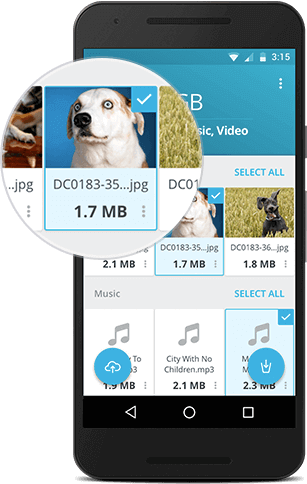Transfer to Cloud enables you to save data to the most popular cloud storage systems such Dropbox, OneDrive and Google Drive, so you can access them whenever you want, and make additional space on your phone at the same time.